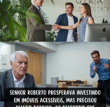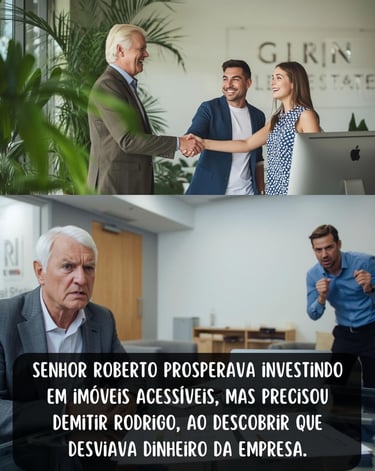 Senhor Roberto sempre foi um homem dedicado e orgulhoso de seu trabalho. À frente de uma imobiliária próspera, ele investia em imóveis acessíveis para famílias que sonhavam com o primeiro lar. Contudo, mesmo o cuidado e dedicação de Roberto não foram suficientes para evitar a decepção: seu filho Rodrigo desviava recursos da empresa, aproveitando-se da confiança do pai. Ao descobrir a fraude, Roberto não teve escolha senão demitir o próprio filho.