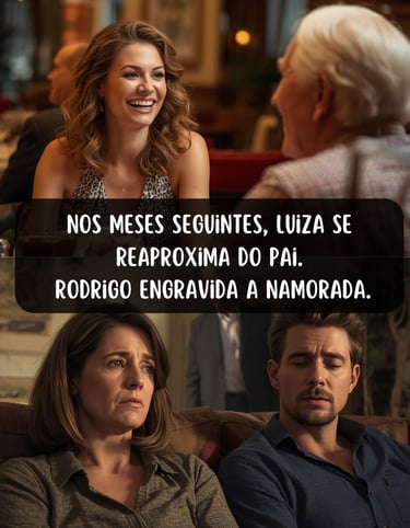 Nos meses seguintes, o relacionamento entre Luiza e o pai se fortalece. Eles passam a conversar, rir e partilhar momentos que antes não existiam. Contudo, a mãe, senhora Ivone, continua distante — sempre preocupada com Rodrigo.